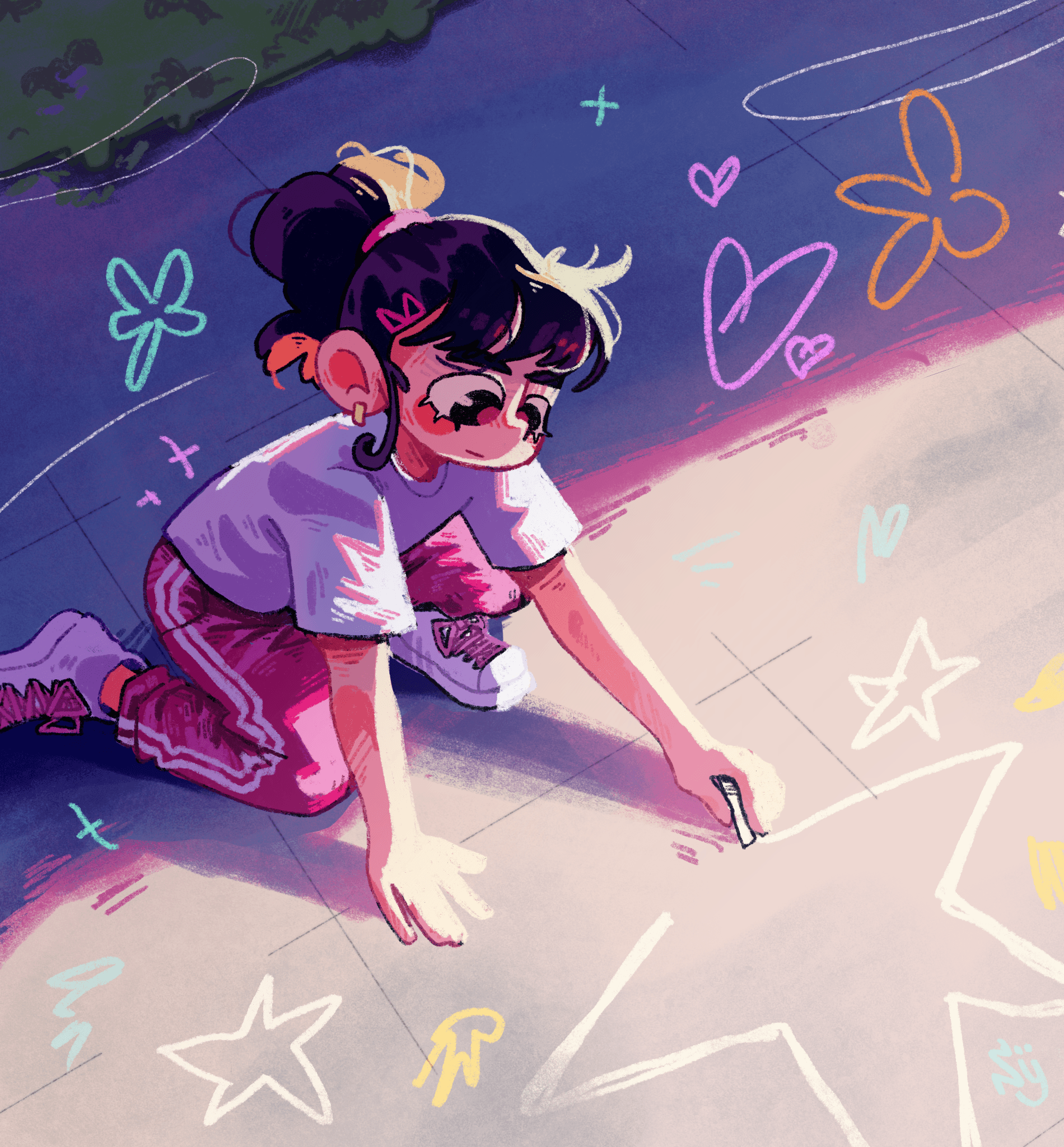Quand je ne suis pas en train de dessiner ou d’animer, vous me trouverez en train d’explorer de nouvelles inspis, peindre, ou apprendre toutes sortes d'activité créatives.